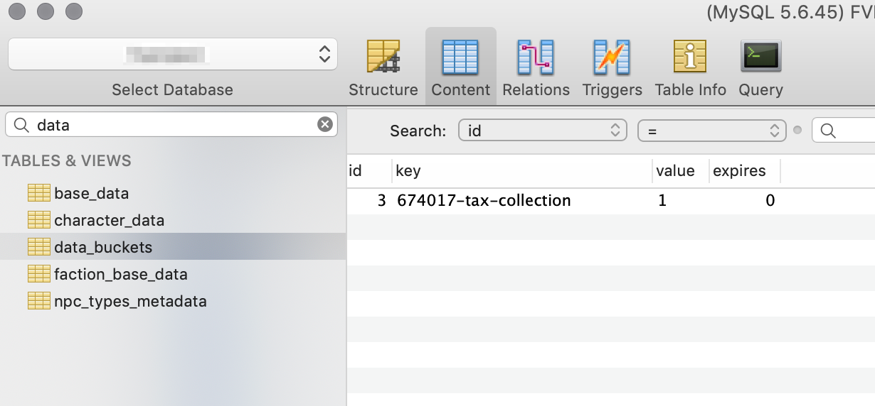 Above, we see the implementation of the Data Bucket Key. This replaces the use of quest::setglobal. In the Database, we see the corresponding key: